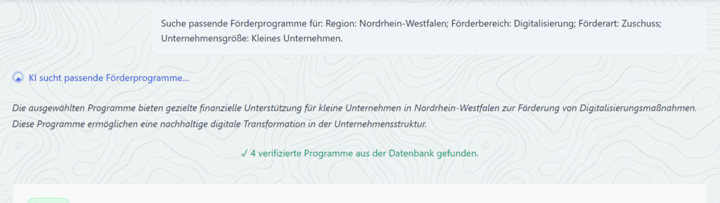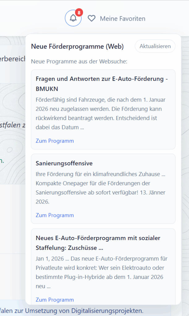 - Crawlt durchs Netz und zeigt nur „aktuelle“ Förderprogramme an